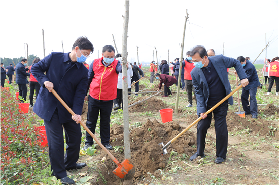 三埋土、兩踩實、一提根……三川大地春潮涌,植樹造林正當時。3月12日上午,鄲城縣四個班子領導崔衛(wèi)國、李建軍、王偉等和廣大志愿者、群眾一起來到皇姑河畔義務植樹現(xiàn)場,揮鍬鏟土,栽植新綠,為鄲城大地再添一片綠意。