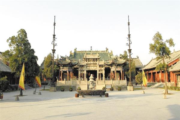 周口關帝廟 位于河南省周口市川匯區(qū)中州大道沙潁河北岸,是“豫平原保存較好,建筑藝術價值較高的古建筑群”。 周口關帝廟始建于康熙三十二年(1693年),乾隆、嘉慶年間多次擴 修,至道光十六年(1832年)全部建成,歷時145年。東西寬105米,南北長158米,面積12590平方米,占地20余畝。 周口關帝廟是全國重點文物保護單位,號稱“周口八景之冠”。它猶如一段凝固的歷史,記載著昔日周家口商業(yè)的繁榮和經(jīng)濟的鼎盛。關帝廟本名“山陜會館”。