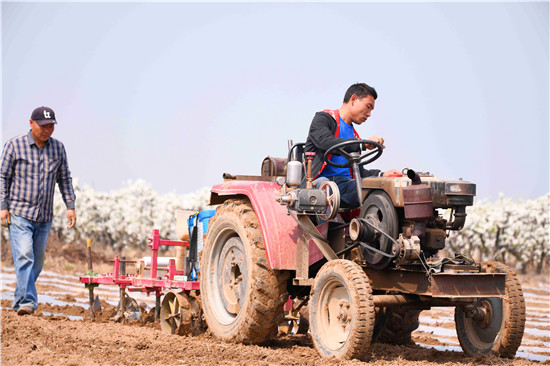 春光明媚,土壤濕潤(rùn),正是春耕春播的好時(shí)機(jī),農(nóng)民們給玉米、冬小麥、棉花等農(nóng)作物開播、澆水、施肥,為秋季豐收做好布局。近日,記者在黃泛區(qū)看到,農(nóng)民們種植玉米已經(jīng)實(shí)行機(jī)械化,下種、施肥、打藥、壓上薄膜,一次成型,減輕了勞作的壓力。