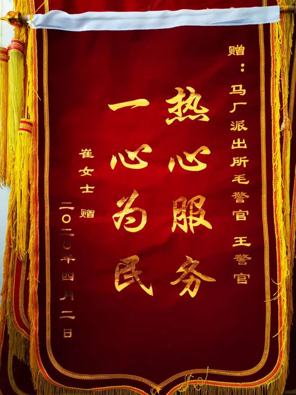 為向民警致謝,崔女士家人多次聯(lián)系馬廠派出所所長(zhǎng)毛衛(wèi)庚說(shuō)要表示感謝,都被婉言謝絕了。近日,已身在鄭州打工的崔女士每次想到那晚民警們對(duì)她們的幫助都心存感激,于是她就手寫了一封感謝信,并制作了一面錦旗,從鄭州郵寄到家里,讓親戚幫忙送到馬廠派出所以示感謝。