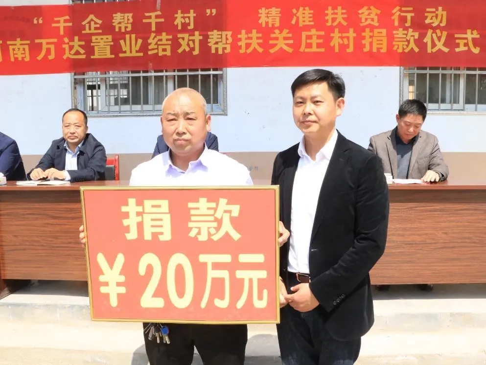 4月13日上午,河南萬達置業(yè)有限公司結(jié)對幫扶捐款儀式在市城鄉(xiāng)一體化示范區(qū)許灣鄉(xiāng)關(guān)莊行政村隆重舉行?,F(xiàn)場,該公司為關(guān)莊行政村捐款20萬元助力脫貧攻堅。