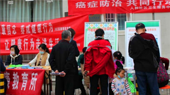 2020年4月15日至21日是第26個“全國腫瘤防治宣傳周”。為進一步提高全社會癌癥防控意識,營造全民防癌抗癌的良好氛圍,人和社區(qū)衛(wèi)生服務中心聯(lián)合川匯區(qū)健康教育所、慶豐社區(qū)開展了系列活動,讓居民科學認識癌癥、樹立癌癥可防可治的正確觀點,提高健康意識。