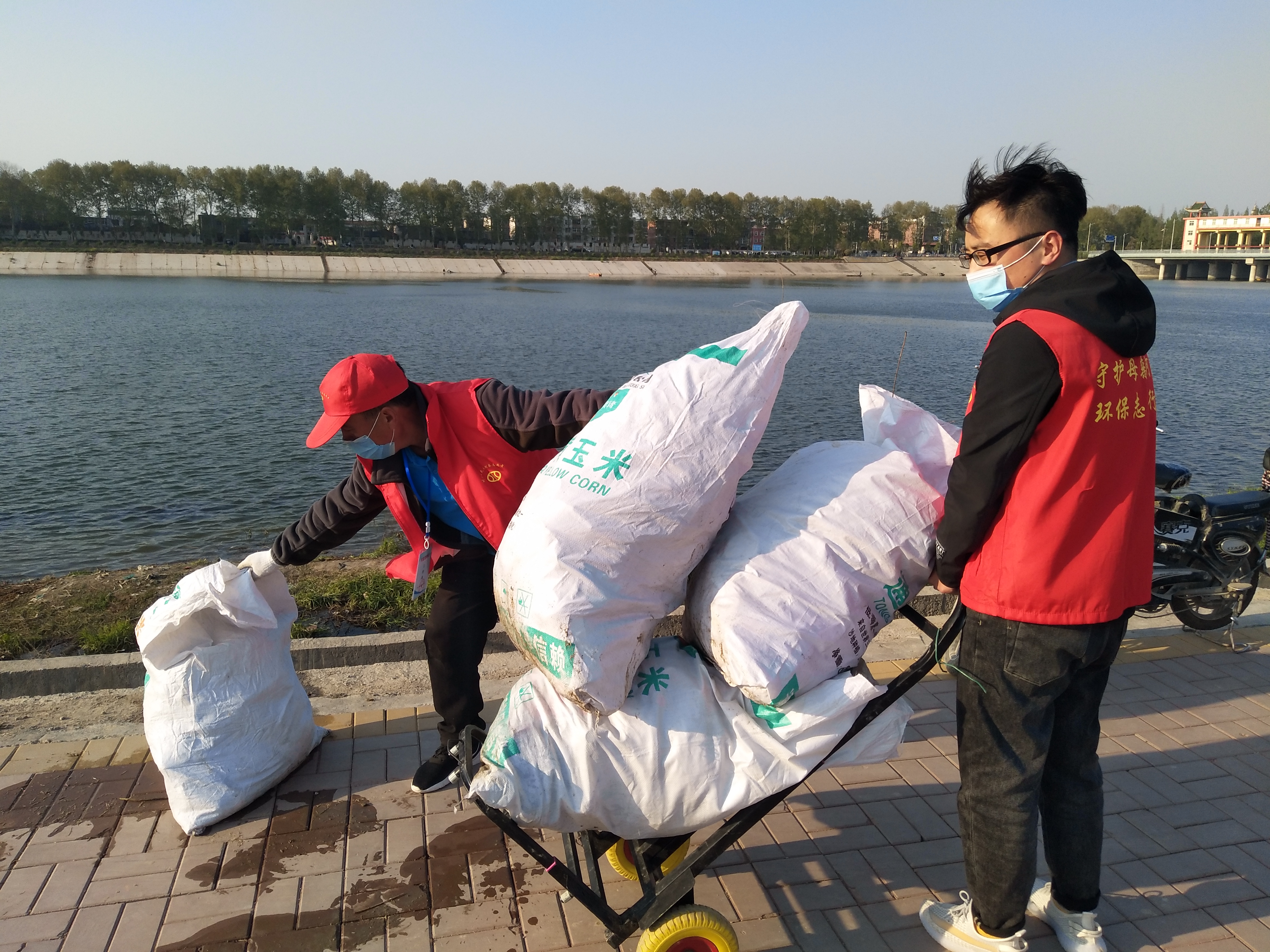“哇!這回?fù)粕蟻淼枚?,快撿呀!”前方不遠(yuǎn)處,一群志愿者歡呼著分揀剛撈上岸的一堆垃圾:塑料瓶,白色瓶蓋,玻璃瓶,包裝袋,化肥袋……志愿者們把他們逐一撿進(jìn)身后的垃圾筐,拉上河堤,裝進(jìn)白色大編織袋里。經(jīng)過兩個(gè)多小時(shí)的忙碌,十余大編織袋垃圾被裝車運(yùn)往垃圾站,慈孝文化促進(jìn)會(huì)第55次護(hù)河行動(dòng)順利結(jié)束。