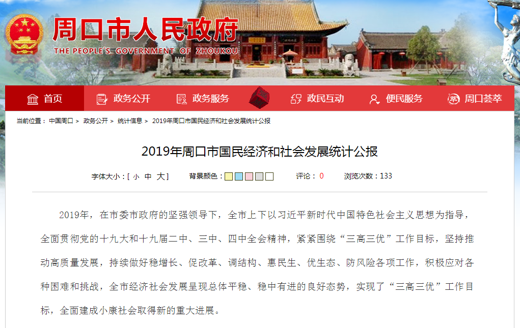 《2019年周口市國民經(jīng)濟(jì)和社會發(fā)展統(tǒng)計公報》,