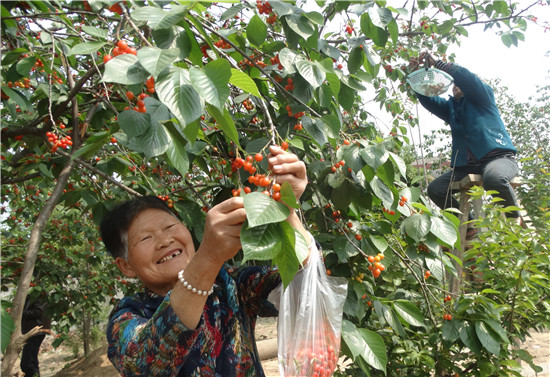 4月30日,沈丘縣周營鎮(zhèn)劉集村一處生態(tài)櫻桃園,晶瑩剔透紅彤彤的甜櫻桃,吸引不少游客前來采摘。近年來,隨著鄉(xiāng)村采摘游的興起,沈丘縣各鄉(xiāng)鎮(zhèn)大力發(fā)展草莓、葡萄、西瓜、蘋果等經(jīng)濟水果種植,吸引廣大市民自駕到田間地頭親手采摘,成為了村民致富增收的新路子。