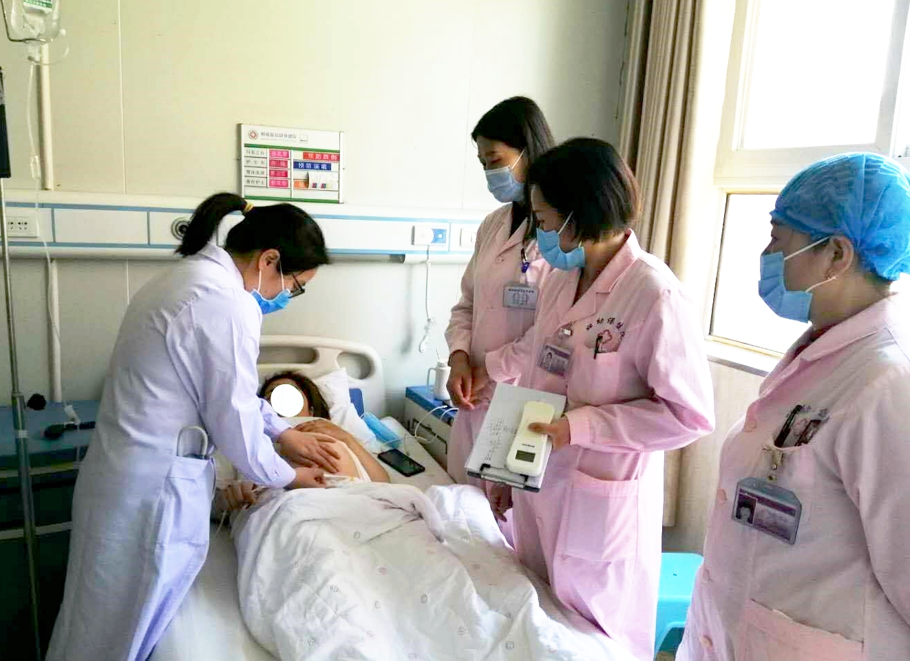 在鄲城縣婦幼保健院副院長(zhǎng)李惠娟陪同下,王麗平帶領(lǐng)婦產(chǎn)科醫(yī)師查房,檢查患者切口愈合情況,指導(dǎo)母乳喂養(yǎng)和術(shù)后注意事項(xiàng)等;給全體婦產(chǎn)科醫(yī)護(hù)人員講解《妊娠期糖尿病管理》,詳細(xì)的闡述了妊娠期糖尿病的發(fā)病機(jī)制、臨床癥狀、診斷、治療和飲食指導(dǎo)等;在婦產(chǎn)科術(shù)后監(jiān)護(hù)室,搶救一產(chǎn)后出血病人,幫病人按摩子宮、指導(dǎo)搶救,讓患者很快轉(zhuǎn)危為安。