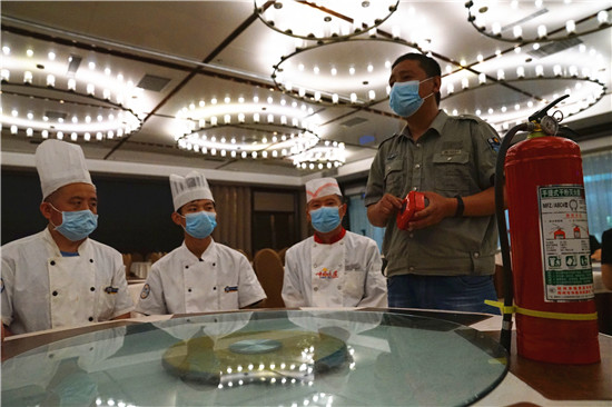 夏季來臨,消防安全成為大家關注的焦點,為了消除隱患,防止安全事故發(fā)生,6月3日,周口飯店精心組織管理人員和員工開展消防應急演練,提升消防應急處置能力,預防各種事故發(fā)生。當天,來自該飯店餐飲部及客房部40余名工作人員參加了演練。(記者 金月全 攝)
