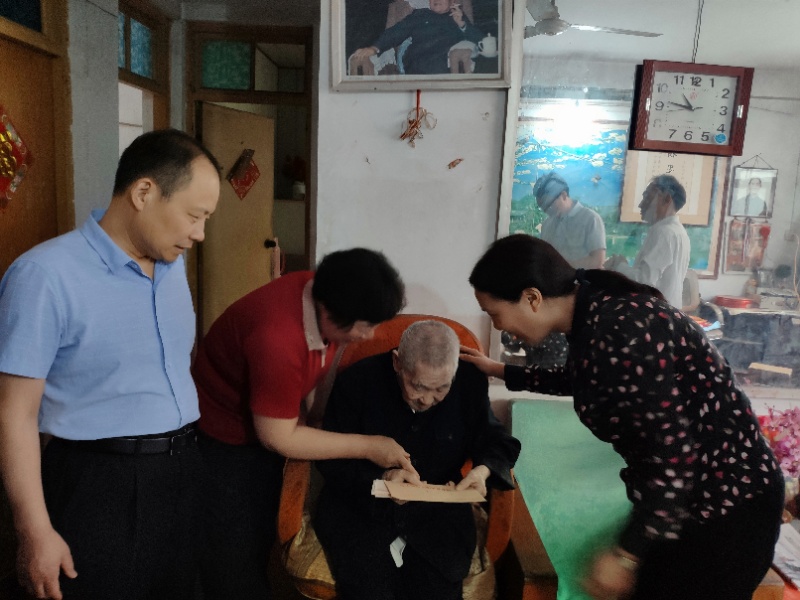趙百廉老人家現(xiàn)年94歲,系黃埔軍校二十三期學(xué)員,同時是一名抗日老兵。張梅枝一行走進(jìn)趙百廉家中,對老人噓寒問暖,詳細(xì)了解老人的起居飲食、身體狀況,并為老人送上了慰問品、慰問金,感謝老人在抗日戰(zhàn)爭中作出的貢獻(xiàn)。同時向他送上黨和政府的關(guān)懷和節(jié)日的祝福,祝愿他身體健康,晚年幸福。