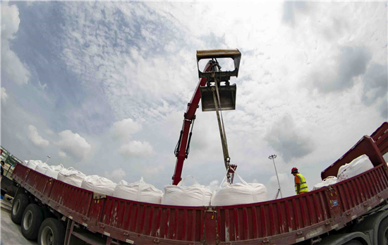 近日,吞吐量達(dá)千萬噸的周口港口非常忙碌,工業(yè)用堿成為當(dāng)前主要的運(yùn)輸貨物,由周口本土生產(chǎn)的堿源源不斷地在此卸車裝船,運(yùn)往下游的蕪湖。作為內(nèi)陸最大的內(nèi)河航運(yùn),沙潁河通江達(dá)海,成為2重要的黃金水道。記者 梁照曾 攝