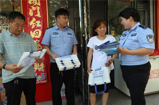贈(zèng)送手提袋只是該局眾多宣傳手段的一種?;顒?dòng)開展以來,554個(gè)警務(wù)工作站的駐村民警、輔警已經(jīng)基本完成了所有家庭的入戶走訪,發(fā)放了反詐傳單50余萬份,1671個(gè)“警民一家親”微信群每天推送反詐騙現(xiàn)實(shí)案例、常識(shí),顯示反電詐內(nèi)容的電子屏和標(biāo)語橫幅隨處可見,鄉(xiāng)村大喇叭的霸氣喊話不絕于耳……