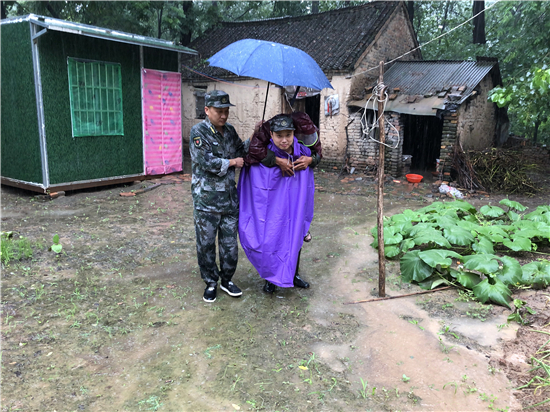 強(qiáng)降雨導(dǎo)致部分地勢較低的農(nóng)房及農(nóng)田被淹,在排查中,發(fā)現(xiàn)鄭老莊村幾處農(nóng)房被水淹泡,隨時(shí)有倒塌的危險(xiǎn),了解這一情況后,該鎮(zhèn)第八工作區(qū)區(qū)長、“中國好人”、優(yōu)秀退役軍人蔣昆立即組織鄭老莊村兩委人員及民兵應(yīng)急隊(duì),第一時(shí)間趕到現(xiàn)場,轉(zhuǎn)移隱患點(diǎn)周圍住戶。“雨越來越大,你們這個(gè)屋今晚上不能住了,反正隨時(shí)都有倒塌的危險(xiǎn),把要緊的東西收拾一下,跟到我們走快點(diǎn)”蔣昆勸說鄭老莊村受災(zāi)的一名老大爺。