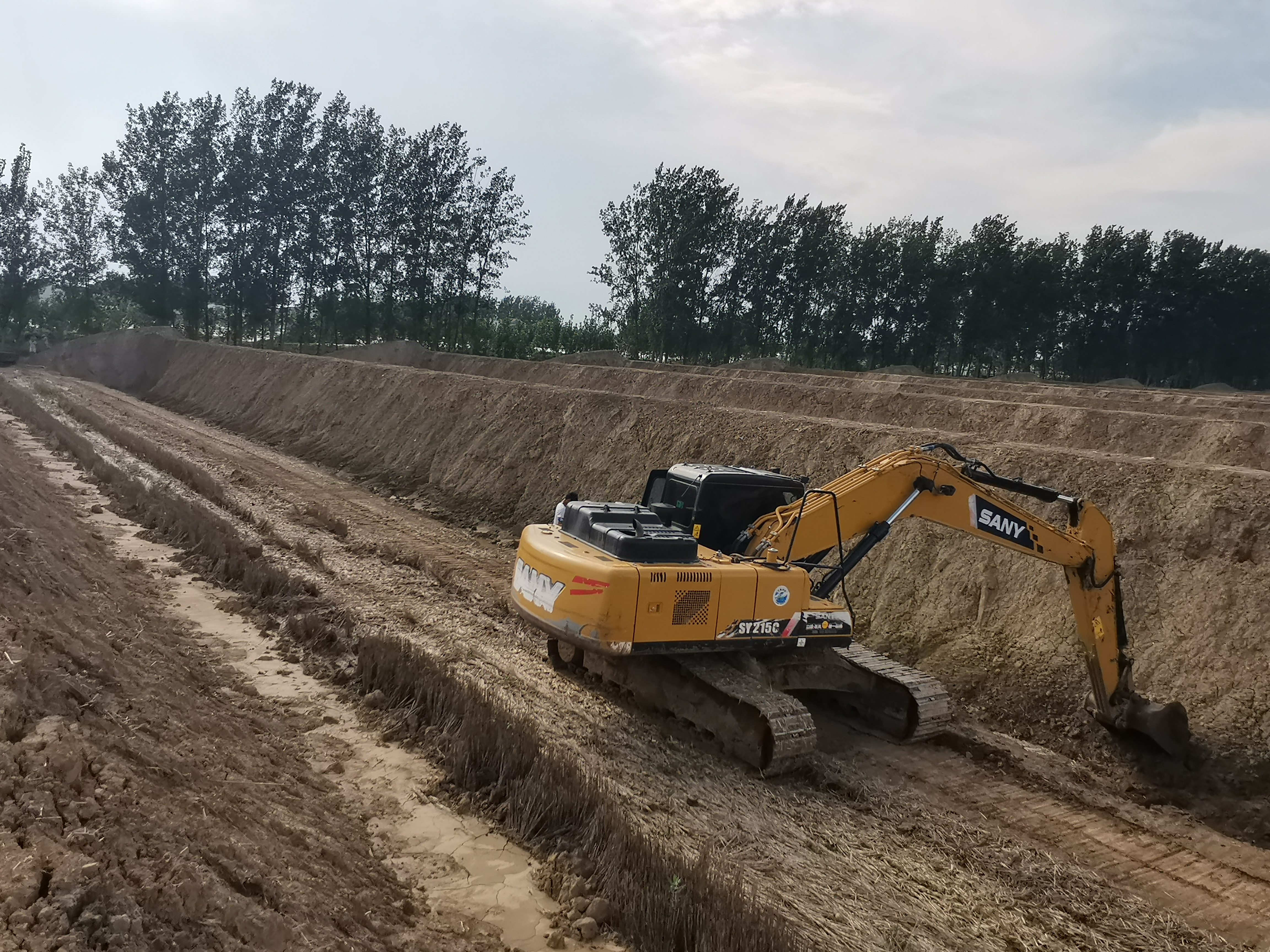盛夏八月,扶溝縣柴崗鄉(xiāng)梅橋村幸福河畔綠意蔥蔥,生機(jī)盎然,河畔兩旁25座新建日光溫室大棚拔地而起正在緊張建設(shè)中,機(jī)器轟鳴聲此起彼伏,挖掘機(jī)、推土機(jī)穿梭而行,現(xiàn)場一片繁忙景象。受近期陰雨天氣影響,工人們正在抽積水、墊土方,克服不利因素加快施工進(jìn)度、緊趕工期。