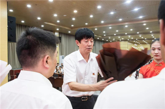 羅明黨宣讀鄲城縣教育體育局對(duì)鄲城二高趙耀校長的賀信。局黨組向鄲城二高取得優(yōu)異成績的莘莘學(xué)子表示熱烈祝賀,向辛勤耕耘的全體教職員工表示衷心感謝和親切慰問,并希望二高面對(duì)高考改革的滾滾大潮和人民群眾對(duì)優(yōu)質(zhì)教育的迫切需求,認(rèn)真總結(jié)經(jīng)驗(yàn),堅(jiān)定辦學(xué)信念,瞄準(zhǔn)更高目標(biāo),進(jìn)一步深化管理改革,優(yōu)化教學(xué)方法,豐厚教育內(nèi)涵,提升辦學(xué)水平,為推動(dòng)鄲城教育高質(zhì)量發(fā)展再添重彩、再立新功!