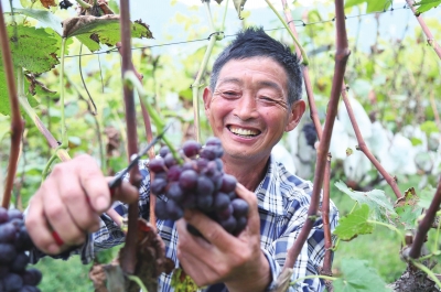 9月14日,汝陽縣十八盤鄉(xiāng)斜紋村冰墨葡萄種植專業(yè)合作社社員在葡萄園里采摘葡萄。斜紋村黨支部積極引導村民種植冰墨葡萄130畝。該村通過發(fā)展優(yōu)質高效農(nóng)業(yè),帶動農(nóng)民走上致富路。
