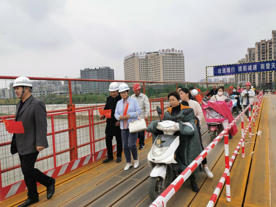 這位女士口中的便民橋位于潁濱公園內(nèi),由中交二航局沙潁河航道升級(jí)改造工程PPP項(xiàng)目部承建。 據(jù)悉,基于沙潁河升級(jí)改造,位于縣醫(yī)院東側(cè)的一座橋需要拆除。為方面行人通行,中交二航局沙潁河航道升級(jí)改造工程PPP項(xiàng)目部,歷經(jīng)兩個(gè)多月時(shí)間搭建完成。中交二航局沙潁河航道升級(jí)改造工程PPP項(xiàng)目部副部長王子龍告訴記者,受老橋下游側(cè)跨河高壓電纜影響,項(xiàng)目部在上游側(cè)約120米處布置一座跨河鋼便橋,便橋長266米,寬6.0米。為提高安全指數(shù),橋兩側(cè)的護(hù)欄高度由原計(jì)劃的1.30米,提升到1.80米。