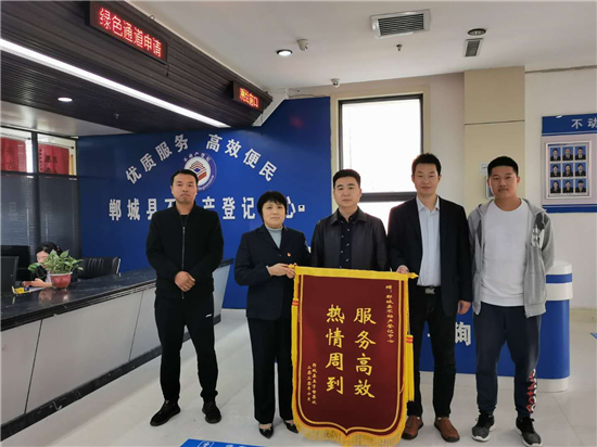 鄲城縣不動產(chǎn)登記中心:服務高效 企業(yè)致謝贈錦旗