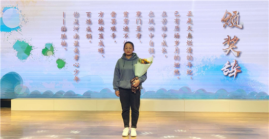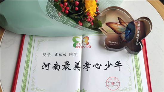 “正是天真爛漫的年紀(jì),已有歷經(jīng)歲月的坦然。在苦難中成長,在風(fēng)雨中自強(qiáng)。寒門至孝,貧窮遮不住你內(nèi)心的光芒。嘗罷艱辛,方能破繭成蝶、百煉成鋼。你是‘河南最美孝心少年’——薛勝楠。”這是組委會(huì)給薛勝楠的頒獎(jiǎng)詞。