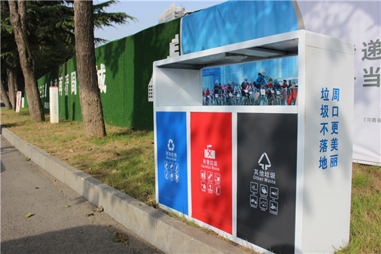 10月21日,記者在中心城區(qū)七一路東段、慶豐中路等路段看到,“藍、紅、黑”三色的新型分類垃圾桶在街邊整齊“列隊”,成為街頭一道靚麗的風景。