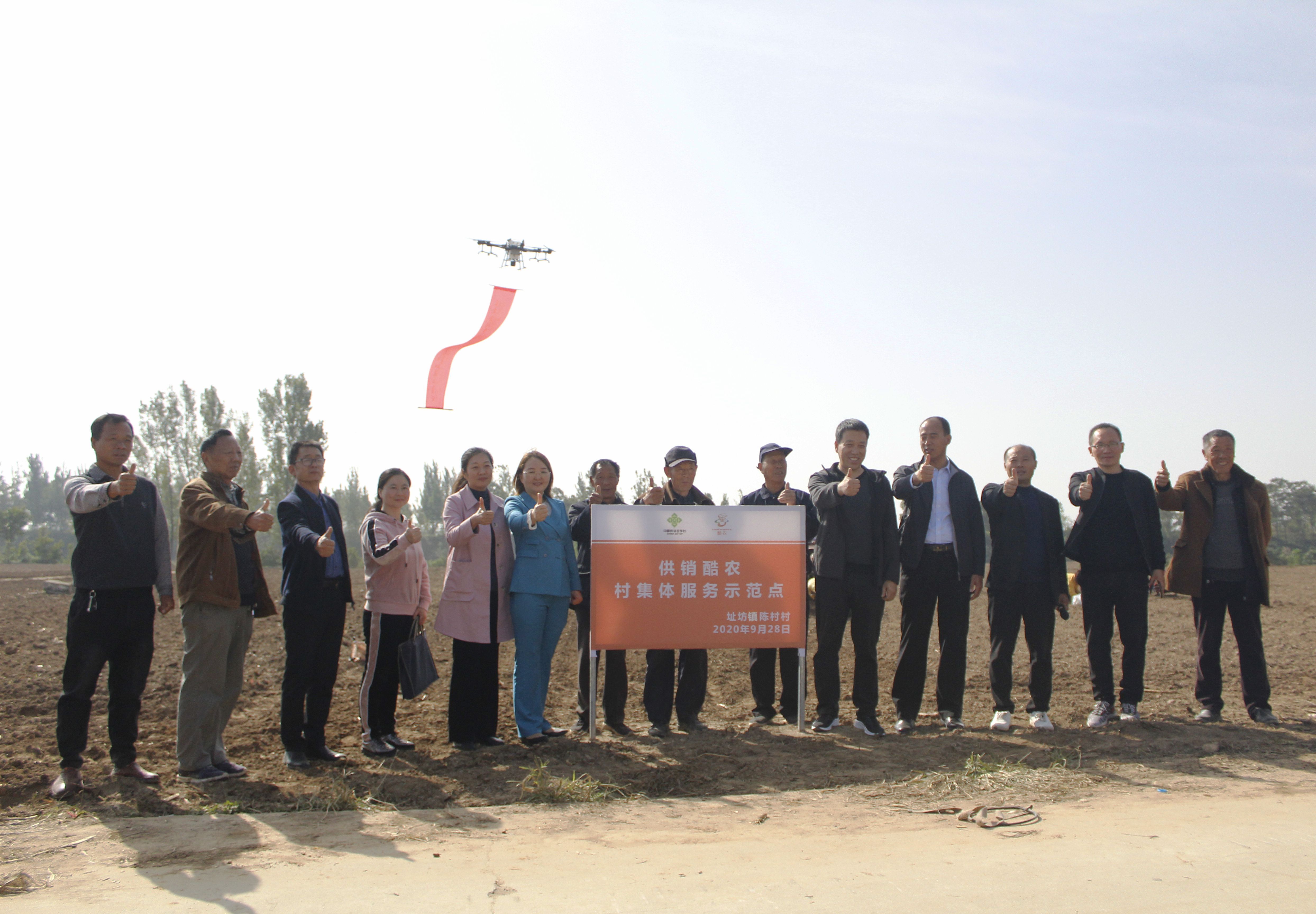 “合作的項目產(chǎn)業(yè)涵蓋了農(nóng)業(yè)生產(chǎn)資料、農(nóng)藥、生活用品的線上線下供應(yīng),土地大田托管,無人機(jī)械耕作、播種、農(nóng)藥噴施、收割等?!眴觾x式上,周口供銷集團(tuán)為農(nóng)事業(yè)部部長牛衛(wèi)東介紹說,陳村村集體股份經(jīng)濟(jì)合作社是周口市供銷集團(tuán)與河南酷農(nóng)科技有限公司(以下簡稱酷農(nóng)無人機(jī)公司)共同打造的無人機(jī)進(jìn)鄉(xiāng)村項目,旨在依靠該公司的科技支撐,發(fā)展智慧農(nóng)業(yè)、綠色農(nóng)業(yè),發(fā)揮供銷體系優(yōu)勢,通過整合無人機(jī)智能技術(shù)研發(fā)力量,形成無人機(jī)智能系統(tǒng)的管控數(shù)據(jù)平臺,將硬件軟件數(shù)據(jù)管理方面形成獨有的供應(yīng)商生產(chǎn)力。