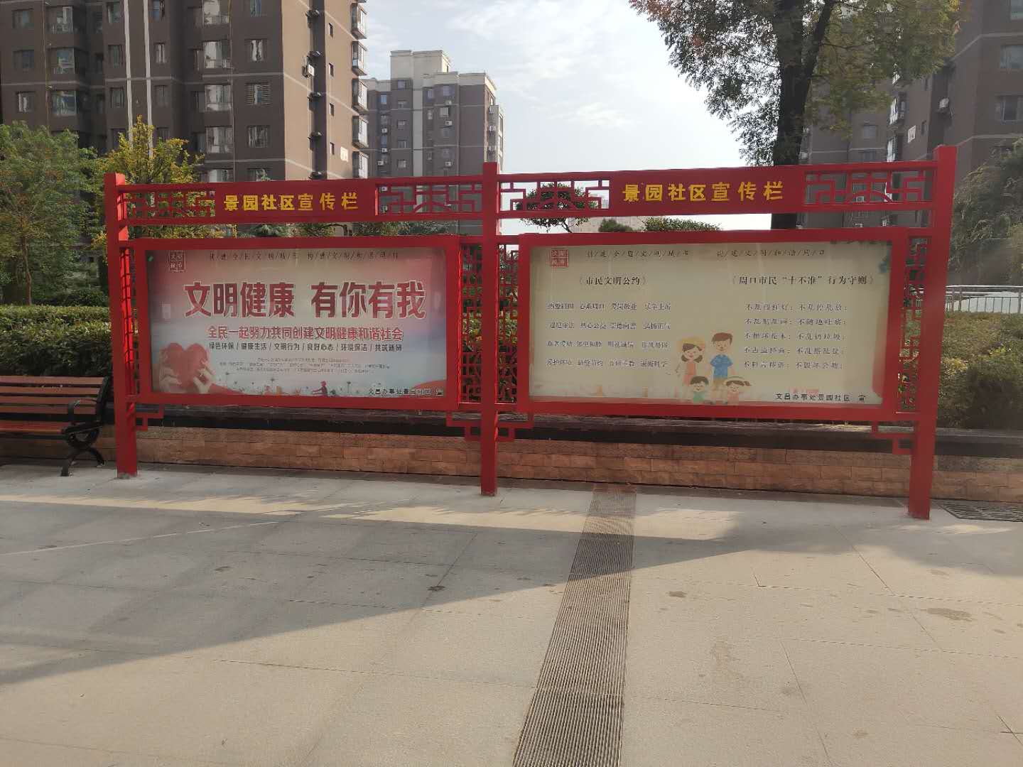 隨著周口創(chuàng)建全國文明城市提名城市工作的不斷深入,文明觀念逐漸深入人心,一些社區(qū)的宣傳欄、公告欄上的“野廣告”不見了,取而代之的是各種“創(chuàng)文”宣傳,《社會主義核心價值觀》《我周口市民文明公約》等宣傳標(biāo)語隨處可見。②18(見習(xí)記者 呂冰汝 攝)
