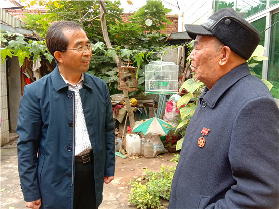 快到王景文家時(shí),記者與他取得了聯(lián)系,沒(méi)想到他竟到路口來(lái)迎記者,看到他硬朗的身板和健康的身體,聽他說(shuō)話聲音洪亮、底氣十足,記者還是很欣慰的,畢竟經(jīng)歷了70年的風(fēng)雨洗禮,還能行走自如、聲如洪鐘,的確是寶刀不老。被他迎進(jìn)家,其老伴滿頭銀發(fā),喜瞇瞇地讓記者進(jìn)屋,王老先生去里屋找出了一枚抗美援朝紀(jì)念章,并說(shuō)抗美援朝和平紀(jì)念章等物品都放丟了,找不到了,有些遺憾。記者就開門見(jiàn)山地說(shuō)要聽他講講參加抗美援朝的故事,他不好意思地笑了:“講不好,年齡大了,記性不好,有好多事都記不清了……”當(dāng)問(wèn)起他老家是哪里時(shí),王老先生還是打開了話匣子。1934年,他出生在淮陽(yáng)縣劉振屯鄉(xiāng)耿樓大隊(duì)李樓村,由于家境貧寒,他從小就跟隨家人一路逃荒要飯來(lái)到了扶溝,但日子還是艱難,為了能活命,父母無(wú)奈把他送給了扶溝縣城一戶人家,從此他就成了這戶人家的孩子,并于1951年5月結(jié)婚??山Y(jié)婚沒(méi)幾個(gè)月,縣里就開始征兵了。當(dāng)兵離家,要丟下妻子,更何況妻子已有孕在身,他真舍不得;保家衛(wèi)國(guó),是義務(wù)是責(zé)任是擔(dān)當(dāng),他責(zé)無(wú)旁貸。家與國(guó),他毅然選擇去當(dāng)兵。與新婚燕爾的妻子依依惜別,他踏上了行軍的征程。那時(shí)可沒(méi)有車接送,去往目的地,全靠?jī)蓷l腿,行軍與訓(xùn)練的苦與累難以想象。問(wèn)他不害怕當(dāng)兵打仗嗎?他回答:“不怕!”語(yǔ)氣堅(jiān)定而有力。生活的磨難讓他對(duì)安穩(wěn)的生活有一種渴望,他明白戰(zhàn)爭(zhēng)會(huì)讓國(guó)家陷入混亂不堪的局面,老百姓的生活會(huì)更加艱難,為了祖國(guó)的和平安寧和兄弟姐妹的幸福,他愿意去當(dāng)兵打仗。保家衛(wèi)國(guó)的種子早已種在了他的心里。