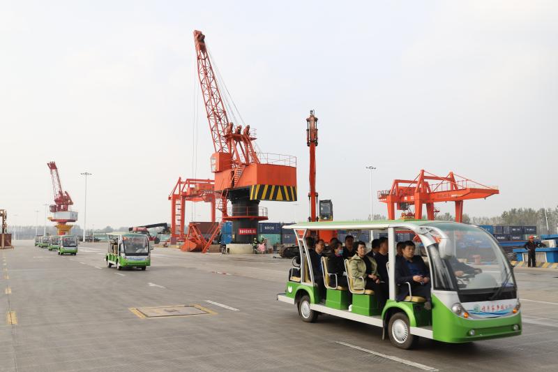 在中心港碼頭,工作人員向來賓詳細介紹了周口的航運總體情況,以及在周口大力發(fā)展臨港經(jīng)濟的大背景下,周口港區(qū)臨港產(chǎn)業(yè)規(guī)劃布局和發(fā)展現(xiàn)狀。隨后,來賓乘坐觀光車,到港池前沿近距離了解碼頭運營情況,親身感受碼頭繁忙的作業(yè)現(xiàn)場同時,來賓們向工作人員了解碼頭貨源、運量、運輸費用等問題,工作人員詳細解答。大家紛紛贊嘆:“想不到中原腹地擁有如此優(yōu)越的水運條件,還建設了規(guī)模宏大的內(nèi)河港口,周口臨港經(jīng)濟發(fā)展氣勢如虹,前景一片光明!”②9