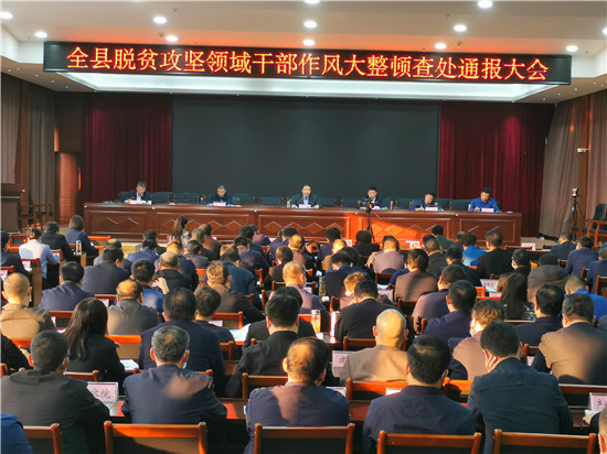會議的主要任務是聚焦扶貧領域干部作風問題,通報典型案例,持續(xù)傳導壓力,警示教育全縣上下扛牢脫貧攻堅政治責任,以更加堅定的決心、更加過硬的作風、更加有力的舉措發(fā)起最后總攻,奮力奪取脫貧攻堅最后勝利。