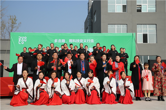書院翰墨香,工廠生產(chǎn)忙??h書法家協(xié)會主席韓文甫引筆奮力現(xiàn)場揮毫,一副古樸典雅的隸書“多走路 用科技定義行走”如清風(fēng)出袖,明月入懷,贏得現(xiàn)場觀眾一片贊嘆。