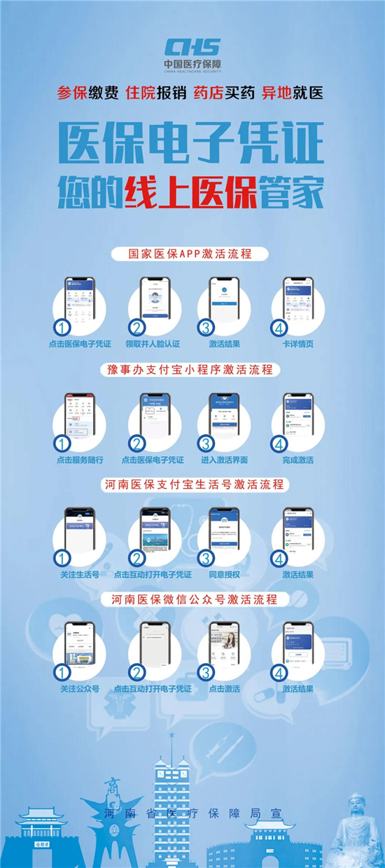 醫(yī)保電子憑證不依托實體卡,領取方式簡單,參保人員可以直接通過國家醫(yī)保App或者通過微信、支付寶,以及經由國家醫(yī)保局和河南省醫(yī)療保障局認證授權的第三方渠道,自助進行認證后激活使用,不需要到服務大廳領取和激活。