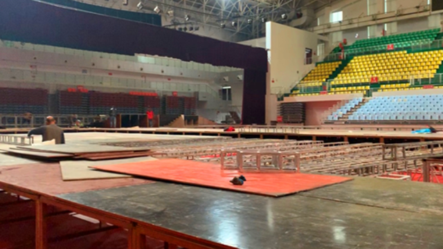 11月23日,記者在周口市體育中心看到,第一屆周商大會展位的搭建工作正在緊張進行,目前周商產(chǎn)品展示展覽區(qū)的主體鋼架結(jié)構(gòu)已見雛形