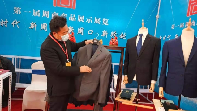 量身定制,做工考究,一件件手工制作的西服讓不少人重新認識服裝的制作過程。在周商大會開幕當天,記者見到了淮陽縣第十三屆政協(xié)常委、非物質(zhì)文化遺產(chǎn)淮陽布老虎傳承人、淮陽縣工藝美術(shù)協(xié)會副主席雷智超。本次大會,他不僅帶來了呆萌的布老虎,還帶來了以自己名字命名的手工西服。制作精良的手工西服像極了一件件藝術(shù)品,吸引了不少人咨詢。