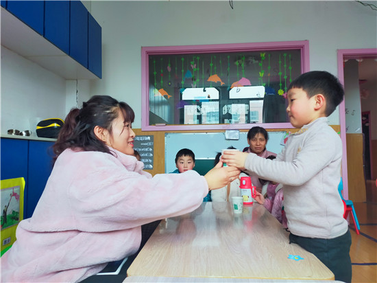 孩子為家長捶背。