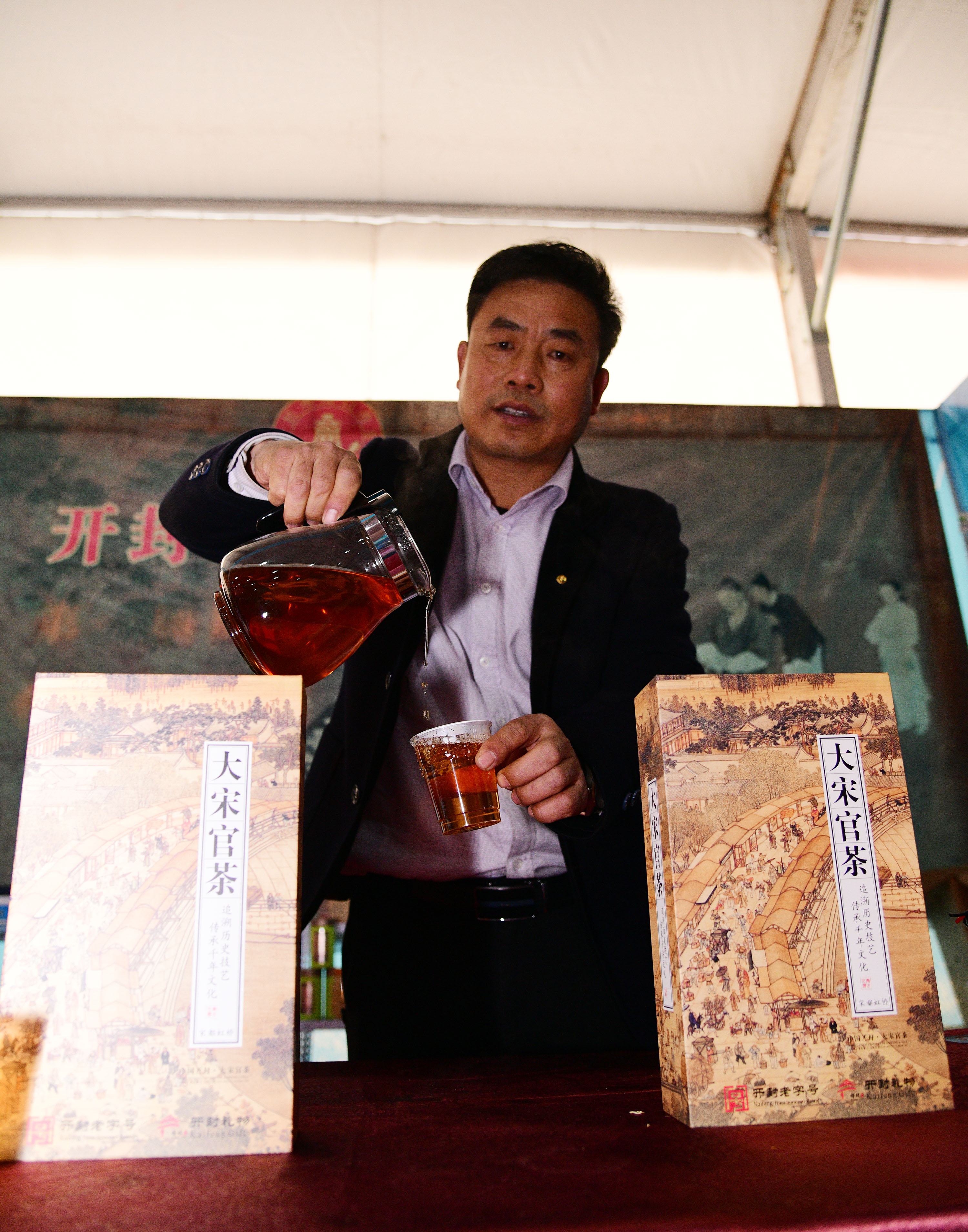 在展會(huì)上給顧客講述大宋官瓷品相的董俊,也是很厲害的周口企業(yè)家,能夠把開(kāi)封老字號(hào)的官瓷,運(yùn)營(yíng)得風(fēng)生水起,大宋官瓷瓷器和汴繡被譽(yù)為七朝古都象征性的物產(chǎn),還有大宋官茶,含有被譽(yù)為茶中黃金的“金花菌”,是“河南老字號(hào)”、“非物質(zhì)文化遺產(chǎn)”,也被選入“首屆開(kāi)封禮物”。大宋官茶源于宋神宗(公元1068年),它今天的主人是淮陽(yáng)區(qū)新站籍企業(yè)家牛華麗,這位淮陽(yáng)籍漢子從小在開(kāi)封長(zhǎng)大,對(duì)大宋官茶獨(dú)有情種,現(xiàn)在是大宋官茶掌舵人,是大宋官茶非遺傳承人。而福興齋桶子雞老總馬勇是沈丘人,這是開(kāi)封的名吃,去開(kāi)封旅游,吃桶子雞和小籠包,成為游客必須品嘗的美味。馬勇參加周商大會(huì)帶回周口的桶子雞深受家鄉(xiāng)人的喜歡,一直熱賣(mài)。而“鞋品”鞋的老總侯建峰是鄲城人,他在廣州設(shè)有代加工廠,鞋子以河南為主要市場(chǎng),在開(kāi)封城由五個(gè)專(zhuān)賣(mài)店,同時(shí)也銷(xiāo)往全國(guó)。