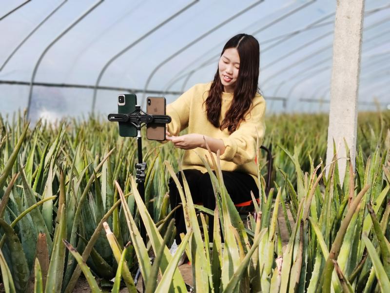 12月7日,川匯區(qū) 華耀城辦事處葛灣村孫立偉的蘆薈大棚里在進(jìn)行直播賣貨。周口市川匯區(qū) 華耀城辦事處葛灣村發(fā)展種植大棚蘆薈,成為當(dāng)?shù)氐奶厣?jīng)濟(jì)產(chǎn)業(yè),并成立集體經(jīng)濟(jì)組織合作社,全村統(tǒng)一規(guī)劃,結(jié)合市場需求規(guī)律,由合作社與企業(yè)簽訂訂單或通過電商平臺進(jìn)行網(wǎng)絡(luò)銷售。①15