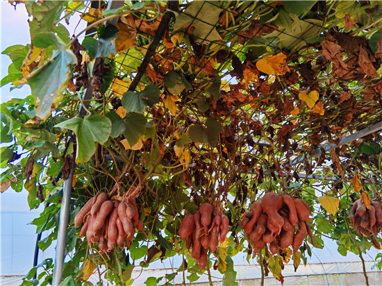 西華縣農(nóng)科所積極開展“空中結(jié)薯”試驗(yàn)種植研究,并取得成功?!翱罩薪Y(jié)薯”采取嫁接技術(shù),選用旋花科植物牽牛作砧木,脫毒薯苗作接穗嫁接而成,嫁接成活后栽到土壤里,搭建棚子,加強(qiáng)薯苗水肥管理,每株插一根小竹木桿,促進(jìn)薯苗快速生長上棚,在棚上吊花盆,盆內(nèi)放蛭石,生長到掤上的薯秧壓到花盆里,加強(qiáng)水肥管理。90天結(jié)薯,進(jìn)入10月份把花盆去掉。該技術(shù)打破傳統(tǒng)栽培方式,主要為公園、科技園區(qū)、農(nóng)業(yè)生態(tài)觀光園、家庭庭院內(nèi)培植,有很好的科研價(jià)值、觀賞價(jià)值和農(nóng)業(yè)推廣價(jià)值。周口日報(bào)·周道客戶端記者李鳳霞 攝