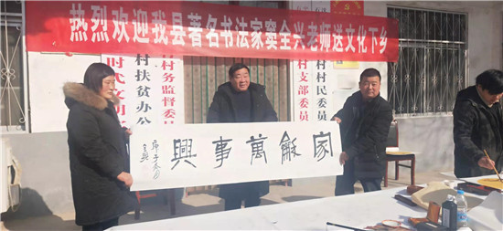 為弘揚傳統(tǒng)文化,傳播正能量,助力農村文化建設,12月16日,沈丘縣自然資源局駐村工作隊邀請沈丘縣書法家竇全興老師到石槽集鄉(xiāng)于營行政村開展送文化下鄉(xiāng)活動,為廣大群眾送去“文化大餐”。