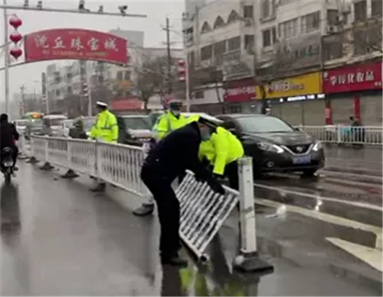走在路上,雪花片子就往臉上撲,迎面的小風像刀子一樣,即使你不愿意,也要跟你進行親密接觸。到沈丘縣回民小學東邊的十字路口,各路送娃大軍從四面八方涌來,那真是車來車往,熙熙攘攘。兩輪的三輪的四輪的,瞬間一起往學校門口涌去。原本送完娃多少都會堵一會,今天竟然沒有堵車!后來才知道學校這邊有個警察很早就來現場指揮交通。