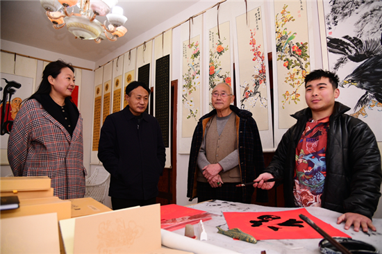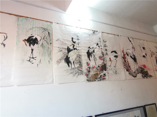 在建豪工作室的斜對面,是50歲村黨支部書記、村文聯(lián)主席盧全禮的書畫工作室。盧全禮書畫兼擅,還會武術、木刻、舞獅子,是附近有名的才子。記者看到,他為太康縣第二屆農民豐收節(jié)創(chuàng)作的中國畫《黃土地的心聲》,以該村嗩吶吹奏藝人幸福而夸張的演出情景,歌頌農村脫貧攻堅取得的巨大成果,極具鄉(xiāng)土氣息。在他的畫室,滿身文藝范兒的五西村民,正以新時代松鶴延年吉祥農民畫,齊心打造中原畫鶴第一村。經過培訓的農村大嫂大媽執(zhí)筆齊描畫,一時鶴鳴九皋,翩翩欲飛。