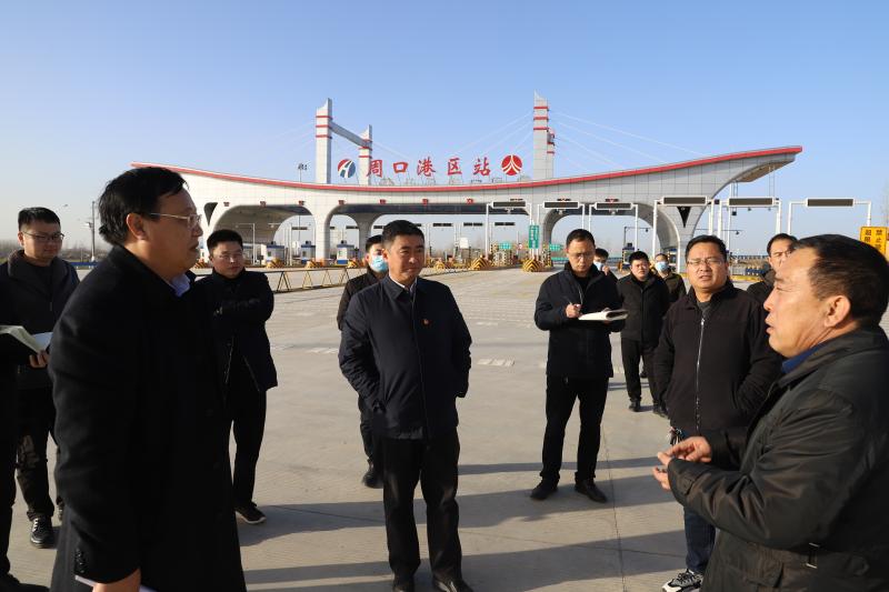 大廣高速港區(qū)互通立交項目距中心港碼頭約為1.2公里,目前已經(jīng)達(dá)到通車條件,通車后通過疏港道路實(shí)現(xiàn)碼頭與高速無縫對接。在該項目收費(fèi)站,孫鵬詳細(xì)詢問項目負(fù)責(zé)人通車前需要做的工作,他指出,高速公路是多式聯(lián)運(yùn)的重要組成部分,要抓緊時間解決目前存在問題,推進(jìn)大廣高速港區(qū)互通立交項目早日通車。