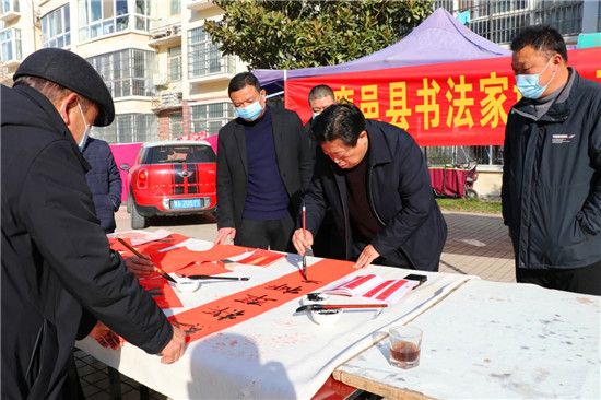 “春節(jié)前夕,縣書法家協(xié)會為群眾傾心打造文化盛宴,組織若干場義寫春聯(lián)進社區(qū)活動,旨在弘揚祖國傳統(tǒng)文化,豐富群眾文化生活?!甭挂乜h書法家協(xié)會主席韓文甫說。