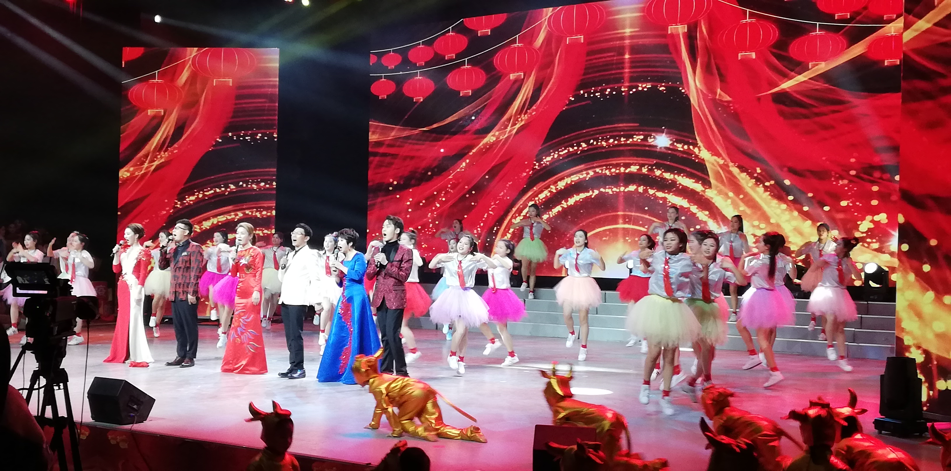 當(dāng)晚,彩排現(xiàn)場氣氛歡樂,吸引了眾多市民到場觀看。晚會(huì)彩排在開場歌舞《金牛賀歲》中拉開序幕。整臺(tái)晚會(huì)舞美設(shè)計(jì)絢麗,節(jié)目編排新穎。10多個(gè)節(jié)目貼近實(shí)際、貼近生活、貼近群眾,有提振士氣、鼓舞人心的歌朗誦《我自豪 我是周口人》,有歡樂喜慶的歌曲聯(lián)唱《在希望的田野上》、《春天的故事》、《我和你》,有名段聯(lián)唱《梨園新聲》,有令人驚嘆的雜技《動(dòng)物樂園.新春大聯(lián)歡》。