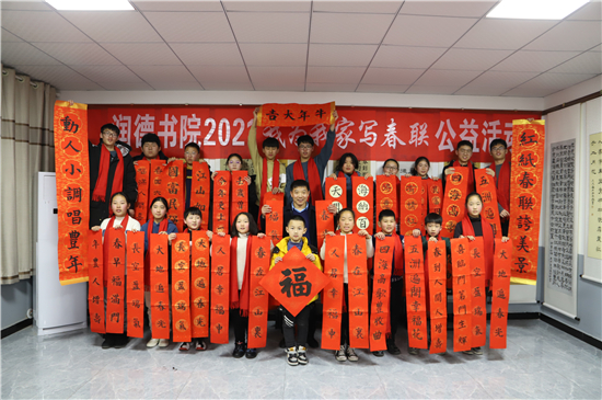 2月3日,記者在鄲城縣潤(rùn)德書(shū)院看到,“我為我家寫(xiě)春聯(lián)”活動(dòng)正緊張地進(jìn)行著,數(shù)十名書(shū)法小學(xué)員端坐案前、從容執(zhí)筆、揮毫作書(shū),一個(gè)個(gè)福字工整又靈活,一副副對(duì)聯(lián)娟秀又詩(shī)意。孩子們?cè)谖輧?nèi)全神貫注地寫(xiě)字,把最美好的祝福用自己的所學(xué)展示給家庭;家長(zhǎng)們?cè)诖巴獾嗄_張望,望子成龍、望女成鳳的心態(tài)表露無(wú)遺。