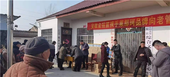 “這是在安徽金搖藍(lán)公司工作的老官莊村人王北領(lǐng)、王建立攜手萊那珂奶粉企業(yè)慰問(wèn)鄉(xiāng)親們吶!”武金英老人一臉幸福。據(jù)悉,這次慰問(wèn)的對(duì)象是老官莊貧困戶(hù)、60歲以上老人及困難群眾,慰問(wèn)捐贈(zèng)的禮品為奶粉240桶,價(jià)值十萬(wàn)余元。同時(shí),老官莊新當(dāng)選地村黨支部書(shū)記王杰華也出資5000元,為村里的60歲以上老人及困難群眾購(gòu)買(mǎi)大米120袋,用行動(dòng)為老官莊老人送去節(jié)日的祝福。