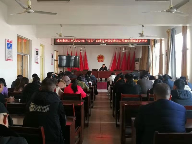 在春節(jié)、元宵節(jié)即將來臨之際,川匯區(qū)城南街道辦事處開展2021年“雙節(jié)”前廉政黨課暨廉潔過節(jié)集體談話活動(dòng),要求黨員干部增強(qiáng)廉潔自律意識(shí)、筑牢思想防線,確保過一個(gè)風(fēng)清氣正的“雙節(jié)”。