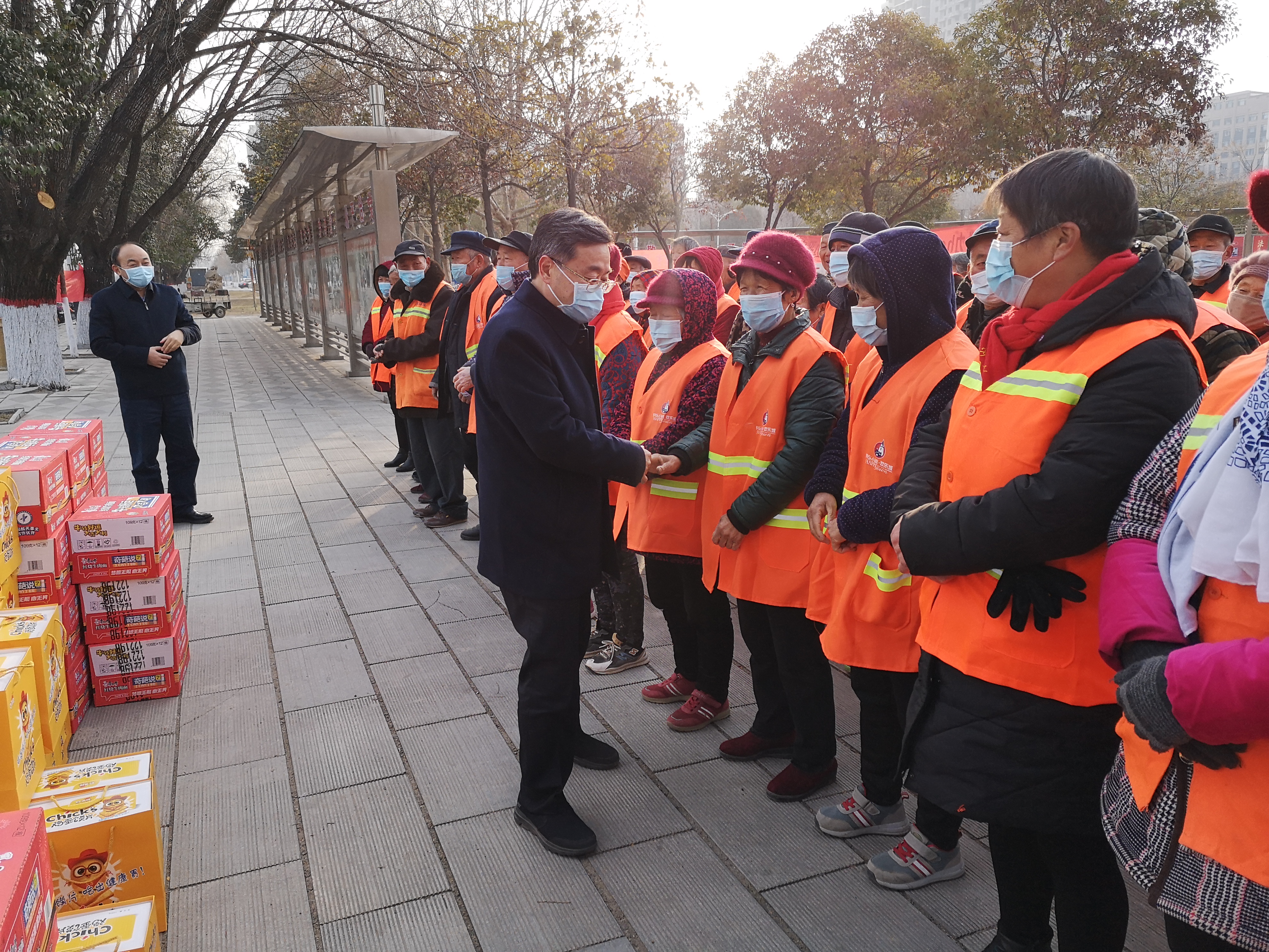 在行政新區(qū)全民健身廣場(chǎng),皇甫立新、劉國(guó)慶同環(huán)衛(wèi)工人們一一握手,并代表縣四個(gè)班子向堅(jiān)守一線的環(huán)衛(wèi)工人致以新春的祝福,對(duì)他們?cè)谶^去一年里付出的辛勤勞動(dòng)表示衷心感謝?;矢α⑿抡f,一年來,環(huán)衛(wèi)工人們起早貪黑、兢兢業(yè)業(yè),為改善居民生活環(huán)境和提升城市形象付出很多心血和汗水,取得了良好效果,城區(qū)環(huán)境和城市面貌有了很大改善,得到了社會(huì)各界的一致好評(píng),希望大家繼續(xù)發(fā)揚(yáng)愛崗敬業(yè)、無私奉獻(xiàn)的精神,把縣城衛(wèi)生打掃的更加干凈、整潔,為全縣人民歡度春節(jié)創(chuàng)造一個(gè)干凈舒適愉快的環(huán)境。