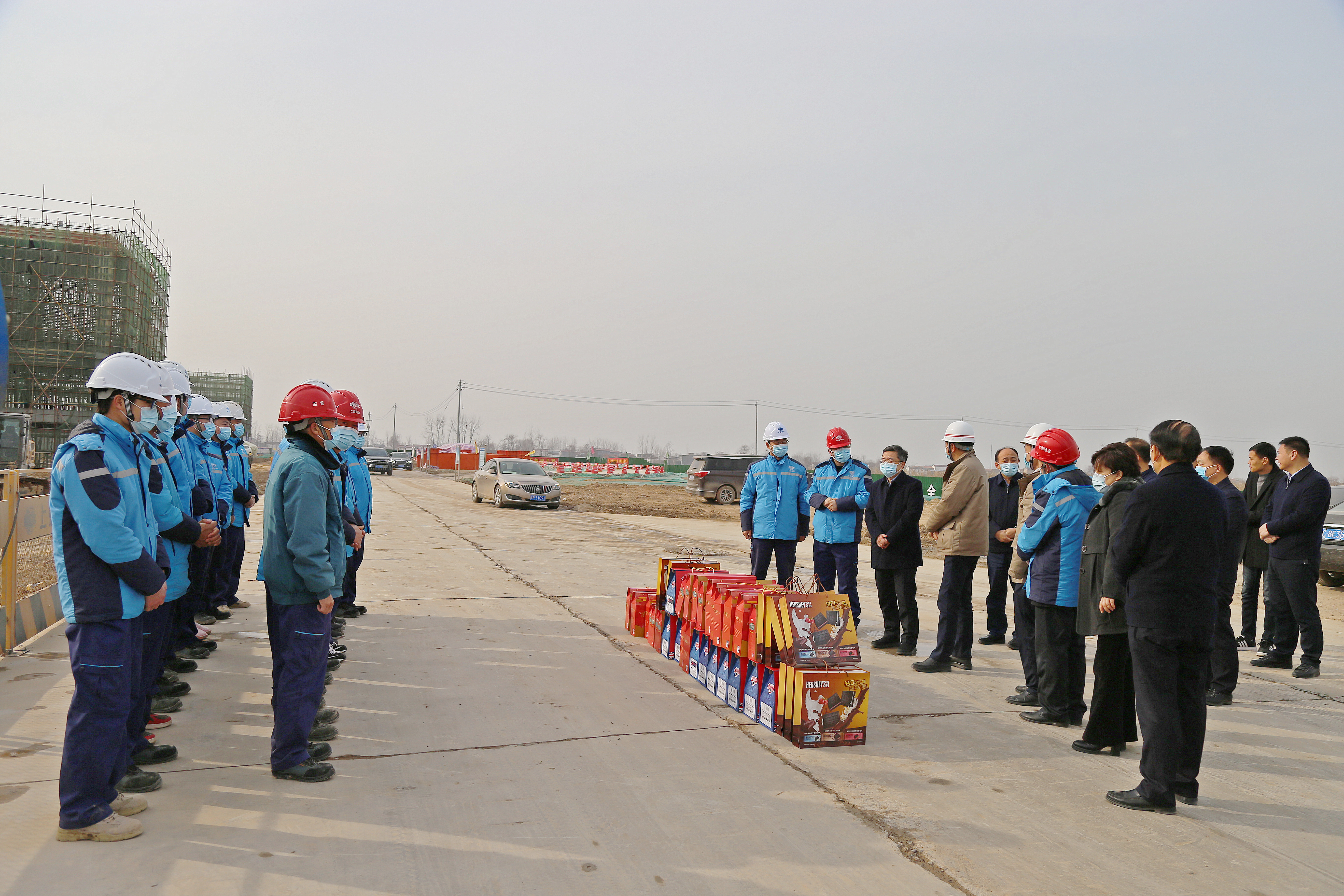 在安鋼產(chǎn)能置換項(xiàng)目部和一期一步施工現(xiàn)場(chǎng),皇甫立新、劉國(guó)慶代表縣四個(gè)班子和全縣人民向奮戰(zhàn)在安鋼產(chǎn)能置換一線的建設(shè)者們表示感謝,并致以新春的祝福。皇甫立新說,安鋼產(chǎn)能置換項(xiàng)目自落戶沈丘以來,項(xiàng)目推進(jìn)如此之快,可謂是日新月異,氣勢(shì)恢宏,振奮人心,這既離不開省委省政府、市委市政府的關(guān)心支持,更離不開建設(shè)者們的辛苦付出。希望廣大建設(shè)者能夠繼續(xù)發(fā)揚(yáng)不怕苦不怕累的敬業(yè)精神,以時(shí)不我待的決心,全面加快項(xiàng)目建設(shè),確保如期實(shí)現(xiàn)2021年5月份建成出鋼的施工目標(biāo),繼續(xù)為周口、沈丘經(jīng)濟(jì)社會(huì)高質(zhì)量發(fā)展作出新的貢獻(xiàn)。