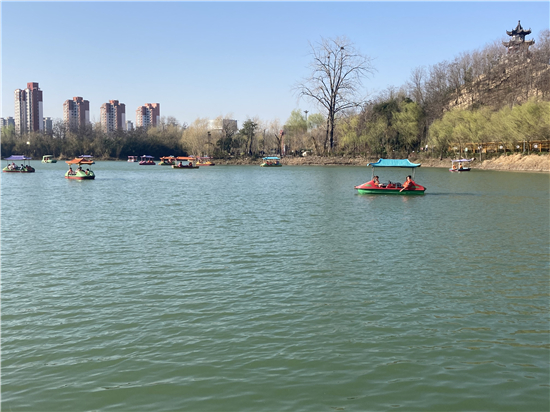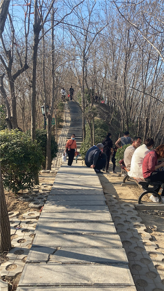 在槐香湖邊,年輕人三五結(jié)伴登上游艇,“坐船能到湖那邊的小島,島上也有槐樹,拍照肯定特別漂亮?!狈掂l(xiāng)大學(xué)生把七星島上的景色留在了自己的相機(jī)里。七星島與槐香湖相連的橋上,人潮擁擠,有的人席地而坐,觀賞著橋上的風(fēng)景。當(dāng)問道在外市工作的王先生游玩感受時(shí),他回答到:“年后上班沒時(shí)間鍛煉身體,今天我把全家人帶來登山,呼吸一下新鮮空氣。”③5