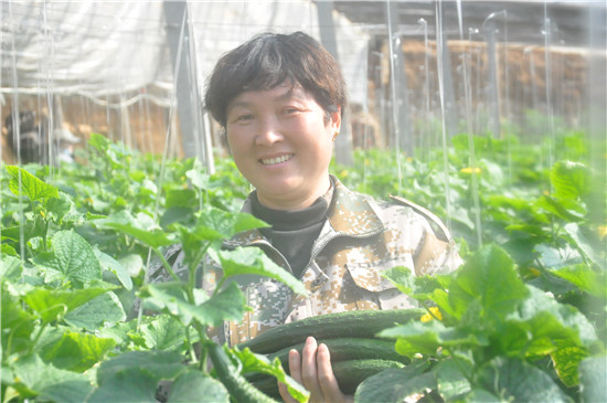 春節(jié)過(guò)后,我市新鮮蔬菜供需平穩(wěn),菜價(jià)未出現(xiàn)大幅度波動(dòng),其中本地蔬菜起到抑制菜價(jià)的作用。圖為扶溝菜農(nóng)正在自家大棚里采摘黃瓜。②8記者 金月全 通訊員 陳奎 攝
