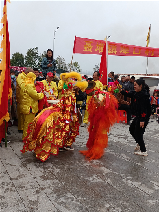 二月二,龍?zhí)ь^。3月14日,西華縣女?huà)z城門前的廣場(chǎng)上,寫(xiě)著“聶堆鎮(zhèn)埠口村文化志愿者宣傳隊(duì)”的紅色條幅前吸引了眾多游人。這些志愿者們用群眾喜聞樂(lè)見(jiàn)的舞獅、戲曲等傳統(tǒng)文藝節(jié)目,自編自演脫貧攻堅(jiān)給村民們帶來(lái)的新變化,宣傳黨的富民政策,鼓勵(lì)大家參與到鄉(xiāng)村振興工作中。