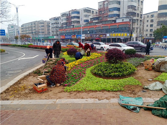 一場春雨過后,處處洋溢著勃勃生機。3月20日上午,記者在周口中心城區(qū)大慶路與交通大道交叉口處的紅綠燈旁看到,園藝工作人員正在忙碌著補種花木,黃色、綠色、紅色的花兒平鋪在一起組合成一道亮麗的風(fēng)景,扮靚了街頭,令人賞心悅目。③2